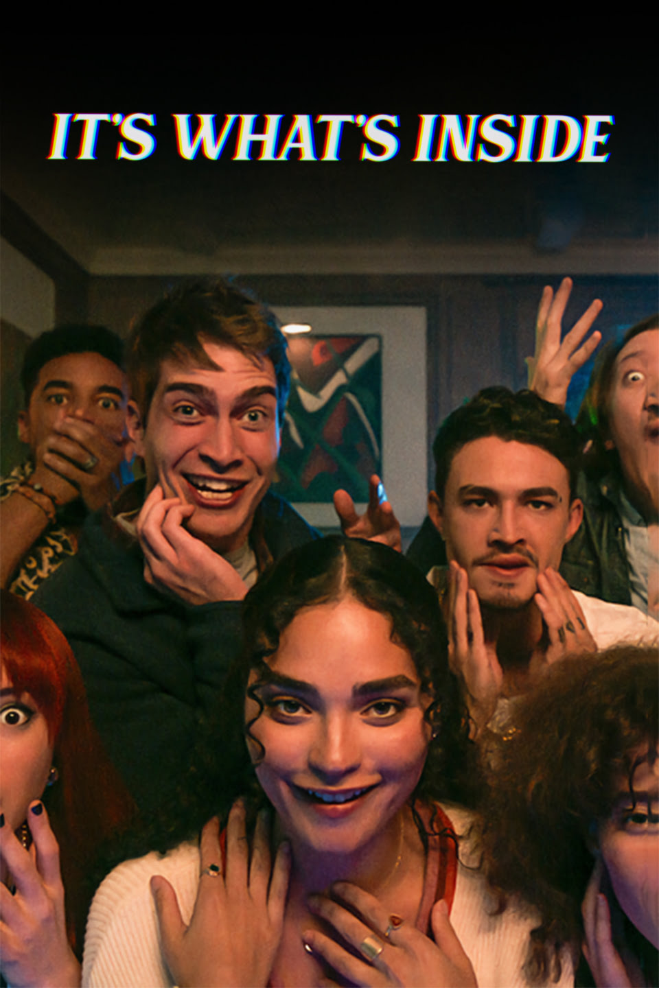 2024년 선댄스 영화제에서 첫선을 보이고 넷플릭스에서 공개된 It's What's Inside는 독창적인 몸 바꾸기(body swap) 콘셉트를 바탕으로 한 스릴러 코미디 영화입니다. 감독 그렉 자르딘(Greg Jardin)의 데뷔작으로, 대학 시절 친구들이 오랜만에 재회하며 벌어지는 기묘한 사건을 그립니다. 이야기는 결혼을 앞둔 루벤(데본 테렐 분)의 파티에서 시작됩니다. 루벤의 호화로운 저택에 모인 친구들은 셸비(브리트니 오그레이디 분), 사이러스(제임스 모로시니 분), 니키(알리샤 데브남-캐리 분), 브룩(니나 블룸 분), 데니스(가빈 레더우드 분), 마야(레이나 하디스티 분) 등 개성 강한 인물들로 구성되어 있습니다.
